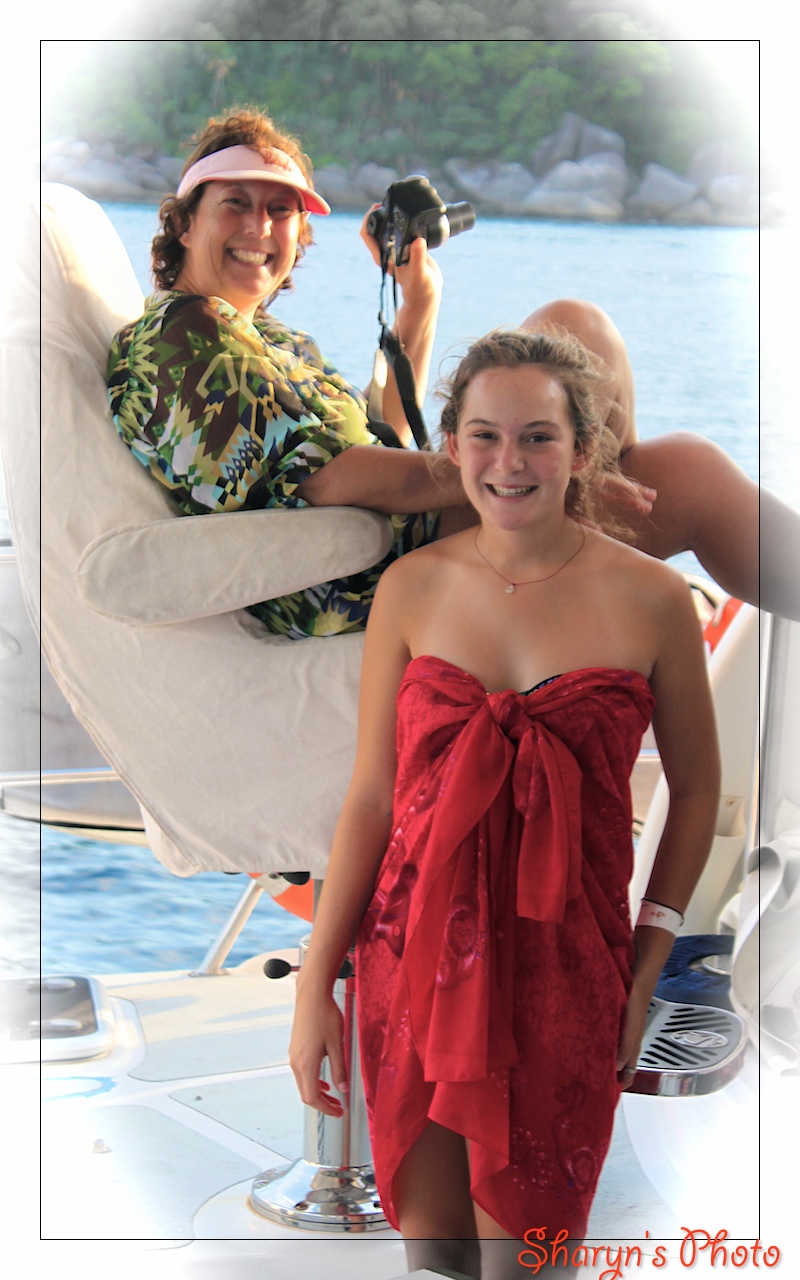 Wonderful and priceless memories! The Andaman waters..ACTUALLY...where we are sitting is waist deep and then it drops right there behind me into deep water...I was not sure if something was going to come and bite our bottoms while we were smiling for the camera:)